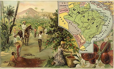 Бразилия — одна из крупнейших кофейных держав в мире, на долю которой приходится более 30% рынка кофе. В XVIII веке сюда привозили йеменские кофейные зерна. В настоящее время здесь производятся различные сорта этого элегантного напитка, в основном арабика, большая часть которой относится к невысокой ценовой категории. Здесь также выращивают робусту, что составляет около 15% от общего объема производства.