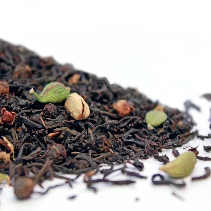 Состав: купаж черного индийского чая, кусочки имбиря и корицы, плоды кардамона, фенхель, гвоздика, перец душистый, аромат восточных специй.